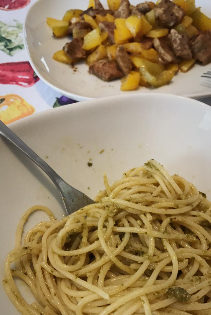 青酱意面 孜然肉片。难得凉快就开个火
