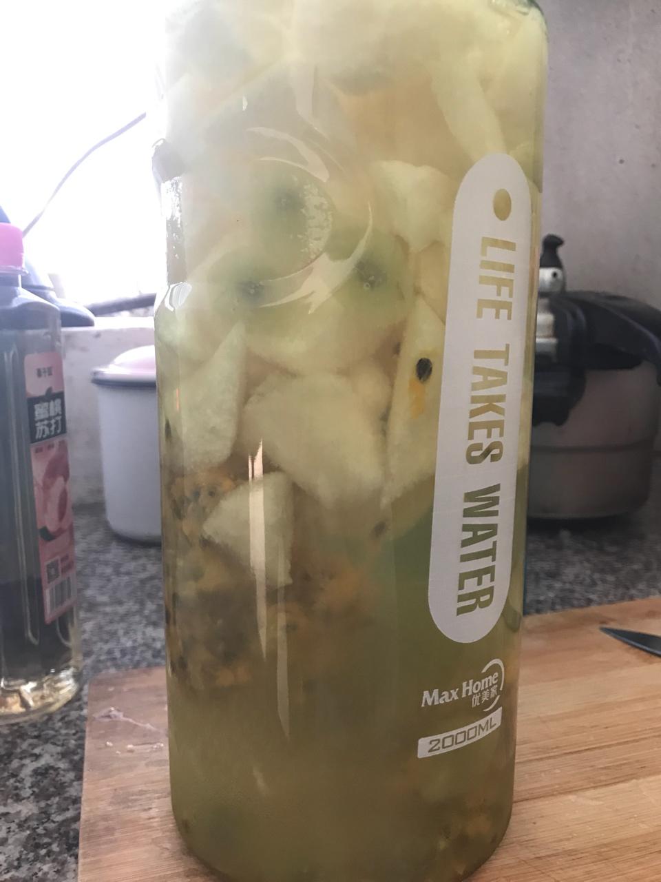 加了梨和蜜桃苏打水,好喝。加了汽水的那瓶又是不可描述的难喝。
