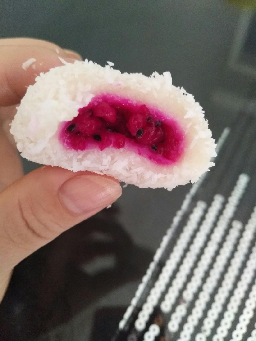 包的火龙果和黄桃馅,冷藏后味道不错,就是好难包,有漏的滚一滚看不见😄