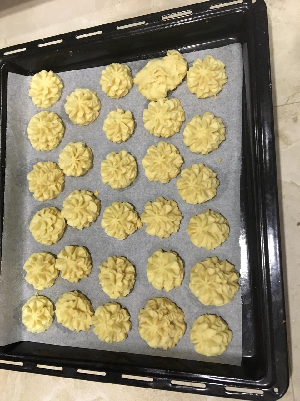 在樓主店裡買的曲奇花嘴,我弄得不是很好看,但味道還不錯,因為我用的嬰兒奶粉有點甜,所以減一半的糖