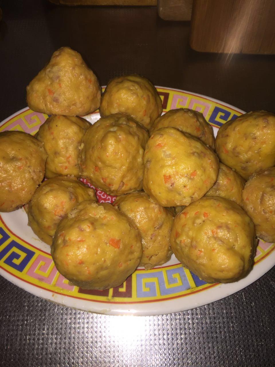 添加了鸡蛋,羊奶粉,牛肉馅,胡萝卜,土豆泥,一定开锅后蒸40分钟,如果功夫短,窝头是粘的,对狗狗有害哦