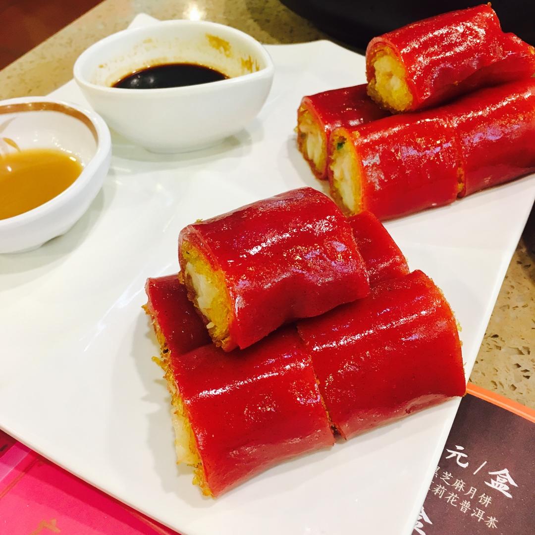 陆升升 做过 晚餐•2017年9月26日 在广州吃滴,点都德红米肠,外面类似肠粉,中层有像馓子脆饼一样油炸的东西,最里面是满满的虾仁,好吃极了,蒸排骨,肉质鲜嫩Q弹,芒果椰汁糕,甜甜的奶香味很足,芥末三文鱼蛋挞,这个实话吃不惯,茶水点的铁观音。后面是寿司和烤冷面,冷面超好吃,有泡菜,酸酸咸咸的,然后是某日的早餐,也是满精致的,都是肉,然后叉烧包竟然是甜的 #晚餐•2017年9月26日# 2017-09-26