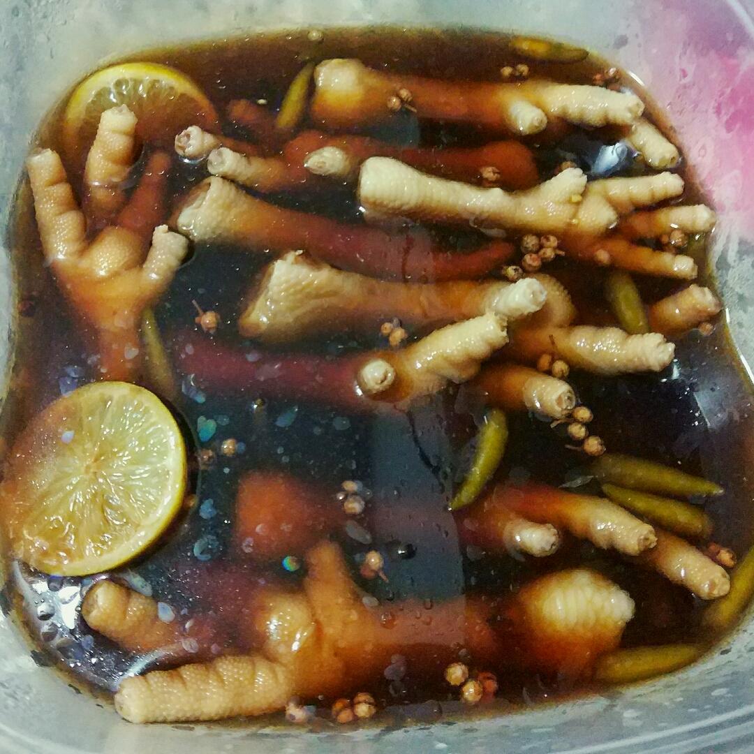 本来是要做泡椒凤爪结果泡椒水太少没味,按这个加了米醋和香油,泡了两天真的好好吃! 一个人在厨房悄悄啃凤爪。。