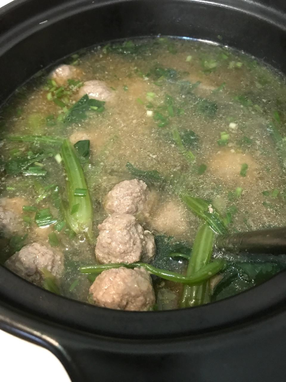 牛肉丸子汤 排骨焖土豆 烤大虾 豆角肉末