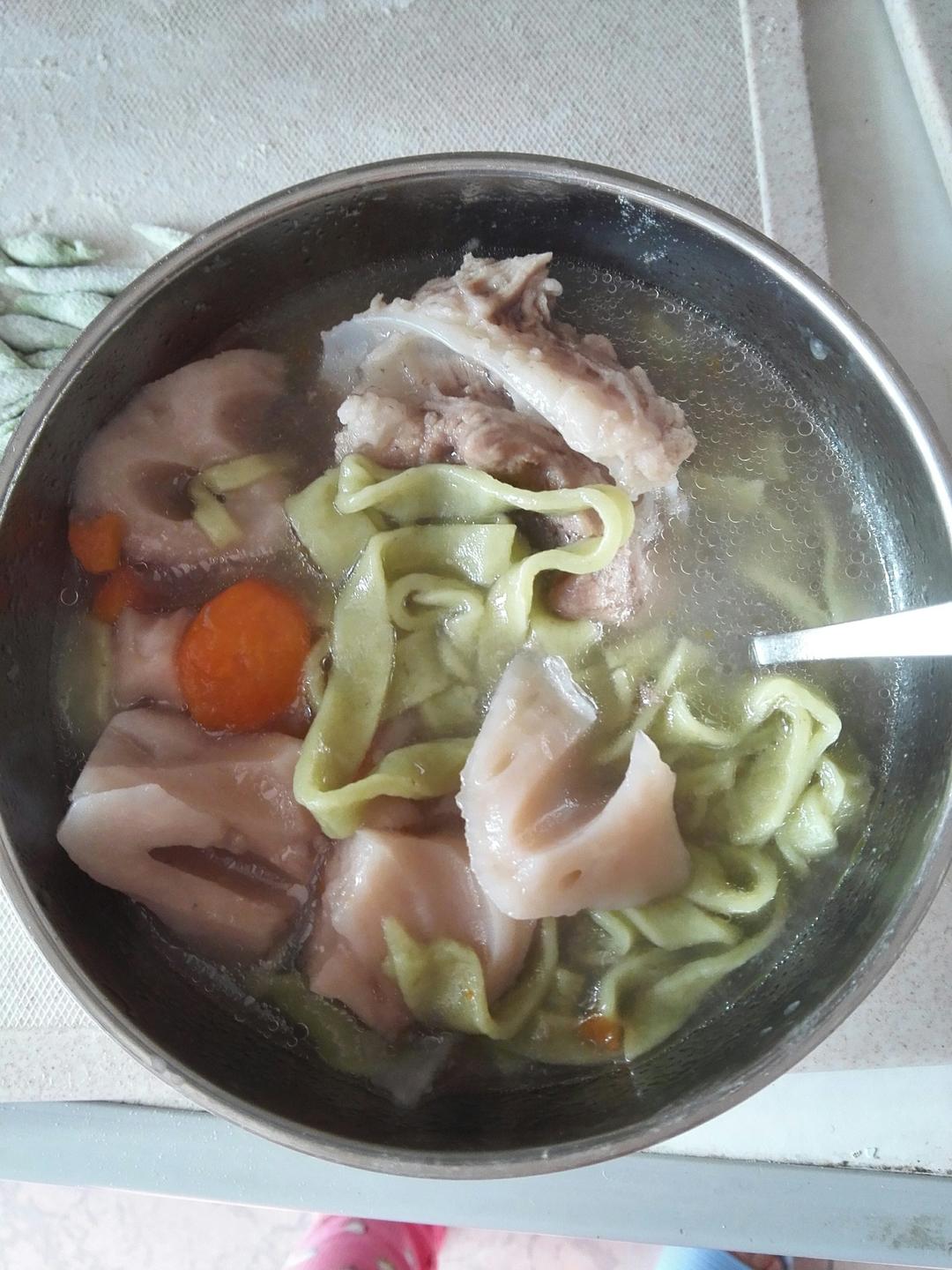 宝宝午餐:脆骨藕段菠菜手擀面