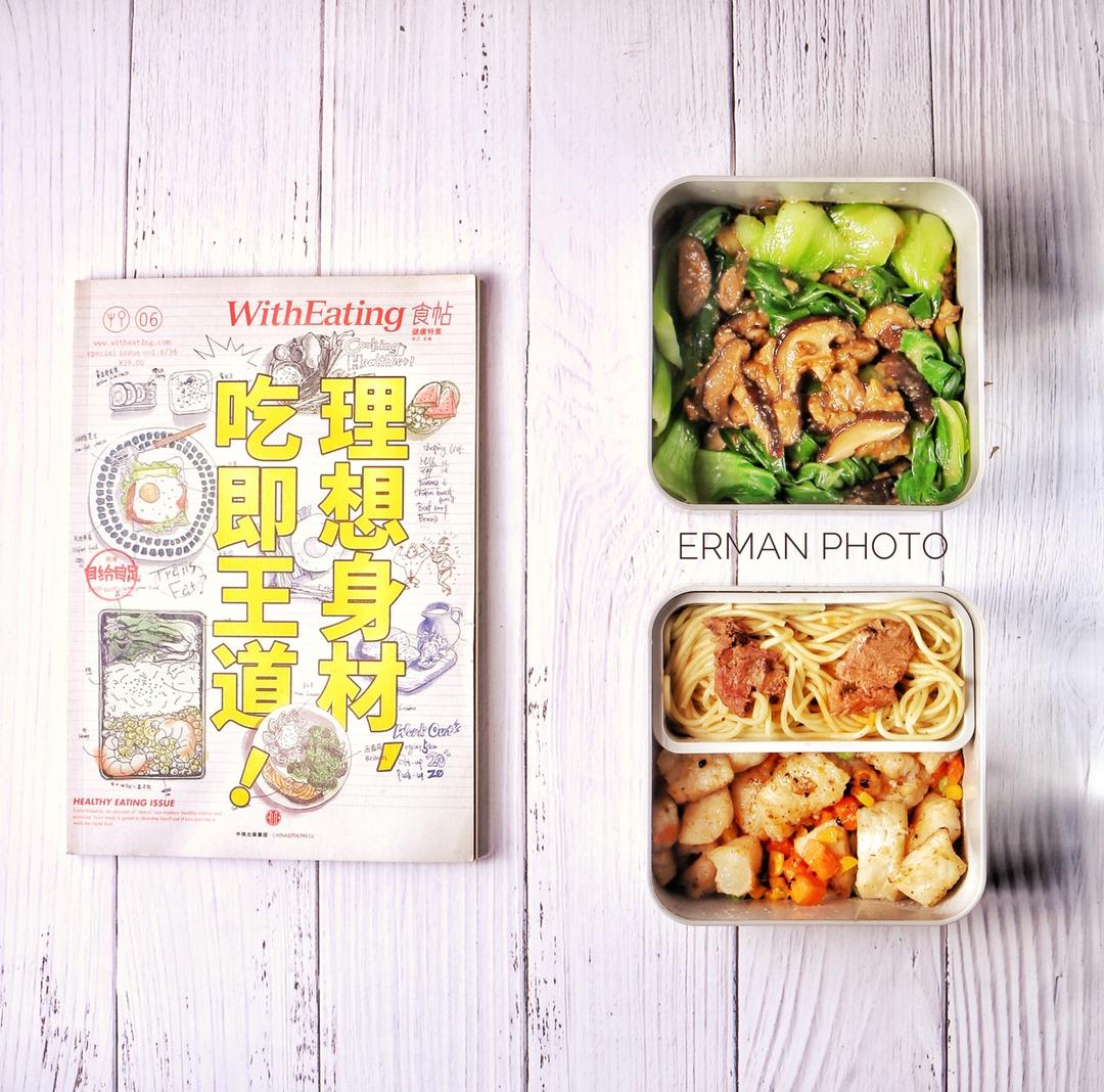 李饱嗝的料理时间 做过 午餐•2017年12月1日 【二慢食记】慢式厨房减脂🍱系列香菇油菜+果蔬粒龙利鱼+牛肉面星期五是黑色的也是彩色的所以今天是五彩斑斓的黑好好工作迎接周末[愉快] #午餐•2017年12月1日##便当##美食# 2017-12-01