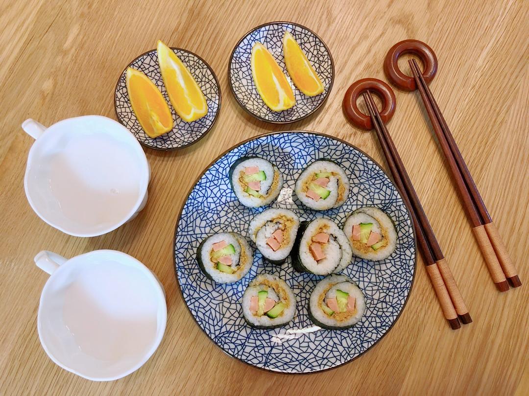 DAY 3 海苔肉松榨菜饭卷+黑糖蒸苹果+坚果豆浆