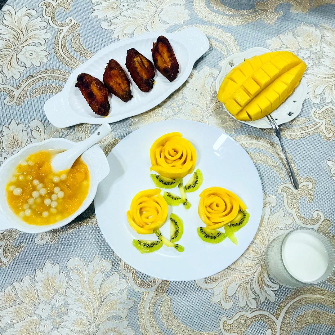 早上5点半起的床依旧手忙脚乱…把囡想吃的圆子甜羹、烤翅、芒果花一顿早餐全部搞定啦[耶]