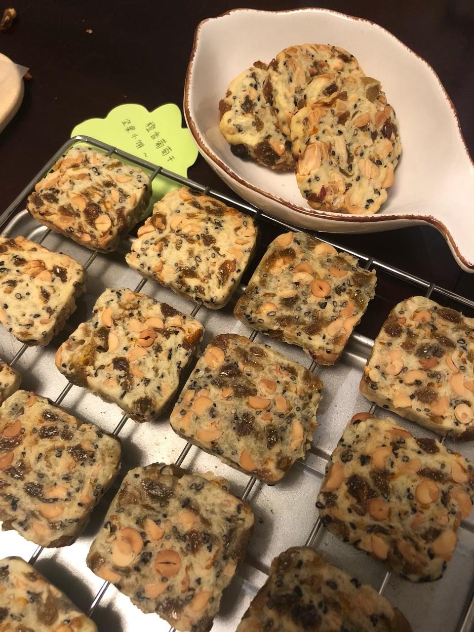 甜甜创造 做过 加州葡萄干饼干 自己做的橙香葡萄干坚果小饼干 分两个面团 第一个面团是奶酥葡萄干(葡萄干和一点金桔皮事先泡软控水 黄油用手软化后加糖再加奶粉 最后加葡萄干碎)第二个面团是橙汁和面(将橙汁与面粉混合均匀)再把两个面团撕小块充分混合 再放烤箱低温慢烤 酸酸甜甜脆脆 低脂低糖 很喜欢 2017-12-07