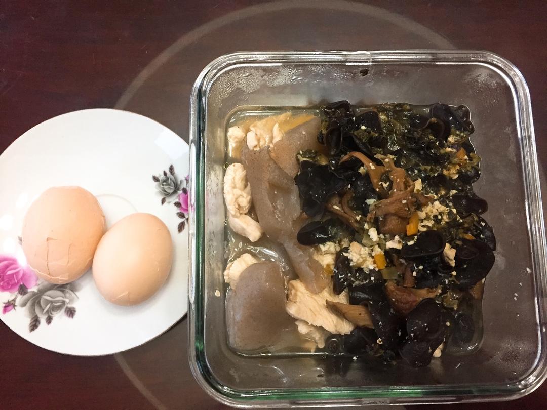 冬天就是要早早起床去跑步让身体热起来后赖在温暖湿润的厨房里吃吃玩玩~图二是昨晚去吃的火锅,今早甚是想念,于是架上了砂锅,煮了鸡胸肉锅底,放进自制黑魔芋,泡发了一晚的茶树菇和黑木耳,自制蔬菜汤底(有大蒜,西兰花,胡萝卜等等),盛起自制酸奶的时候忽然感叹,下一步要是直接会自制豆腐就好了。厨房果然是越堆越满的节奏…… #早餐•2017年12月13日##能做能吃胖仙女#