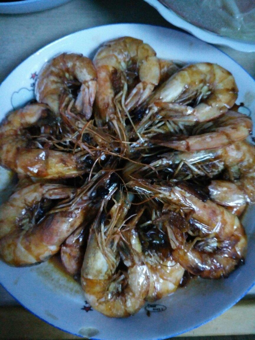红烧大虾 蘑菇汤 蒸龙利鱼