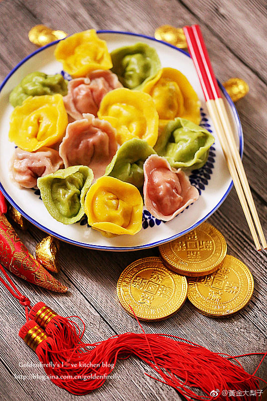 黄金大梨子 做过 彩色元宝饺子 圆圆鼓鼓,饱满讨喜的造型特別接地气 欢庆元旦,做了红绿黄三色,分别代表着红色-吉祥喜气,绿色-生生不息,黄色-希望与活力 最喜欢南瓜黄色,饺子下锅经过高温水煮后,唯一颜色无改变的就是南瓜黄.不得不说,还真的就像个大金元宝似的 2018-01-05
