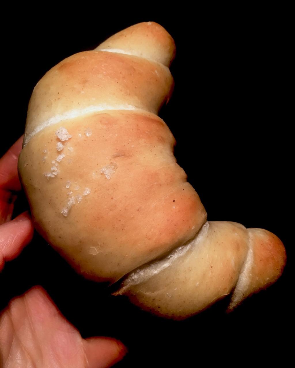 波妞mam 做过 日式盐面包免揉版 面团本来是准备做全麦中种吐司的 突发奇想看到海盐卷就忍不住下手了 所以味道有点清淡 应该面团加盐加糖 裹有盐黄油 不过烤出炉还是香的不行 忍不住减肥之人大半夜吃了小半个 #深夜食堂# 2018-01-08
