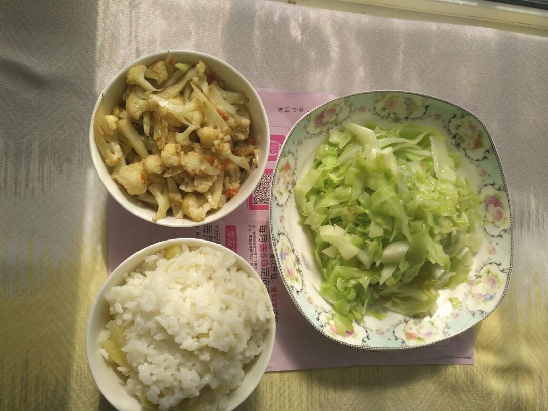 炒花菜,炒包菜,红薯米饭