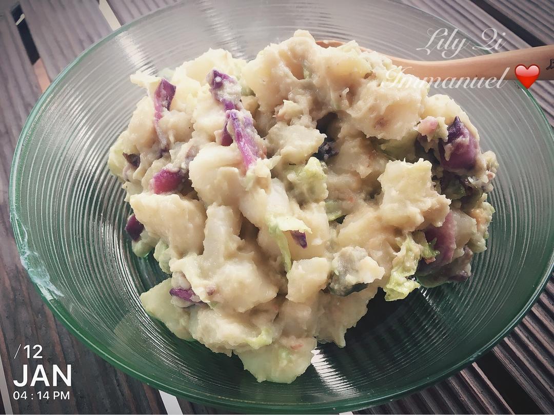大象蚂蚁和小象们 做过 土豆沙拉丨健康·三餐 凤尾鱼代替金枪鱼,还有今天中午烤的没吃完的紫甘蓝。昨晚做了一个梦,记得怀小象的时候也是这个月份里做过相同的梦,就是肚子里揣呀揣的,揣了个小脚板的形状出来,,只是摸到比小象那时候的小。 #晚餐•2018年1月12日##2017,蚂蚁和小小蚂蚁# 2018-01-12