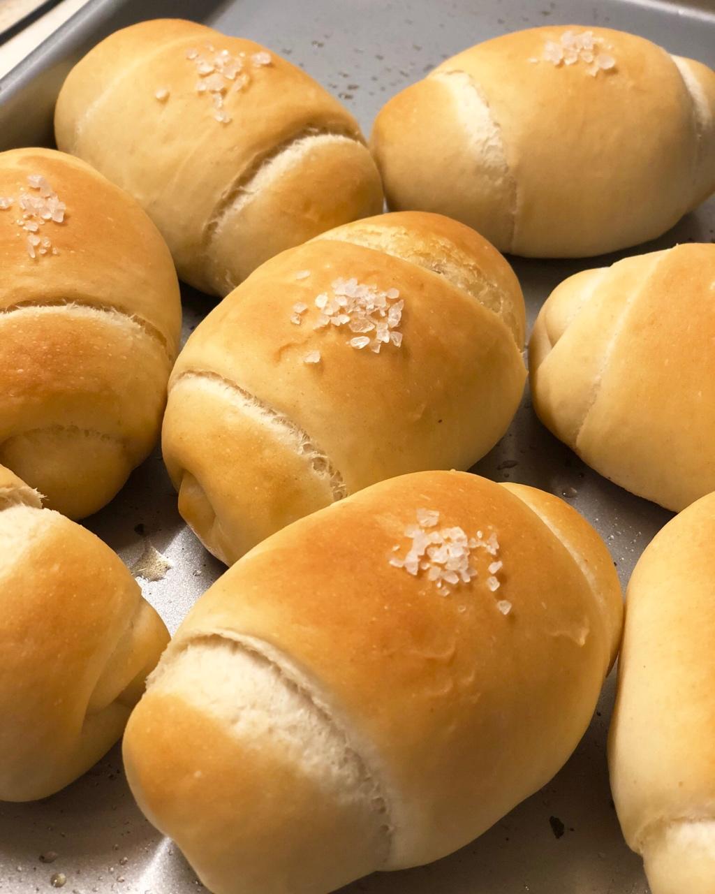 给山崎老师交作业,老师的课每次都受益匪浅。今天用了王后T55,500克粉按配方水量330克,水大了,上次做别的用王后的T65也是这样,感觉王后吸水性特别差。下次记得水可以减到300。没有中途加粉,免强成团,分割冷藏后整型,果然老师说的冷藏了会好整很多,不然这么软的面团想想都崩溃[擦汗]。只是自己整型还是太差,不太好看,还要多练啊。上200下180中下,不上色[尴尬]又翻转上移多加5分钟。下次上210下190中上试下吧。另外内裹的黄油减到了5克,怕胖😓 #晚餐•2018年1月20日#