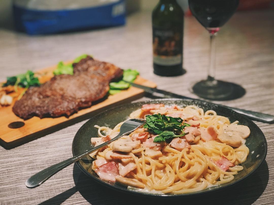 白汁蘑菇培根意粉