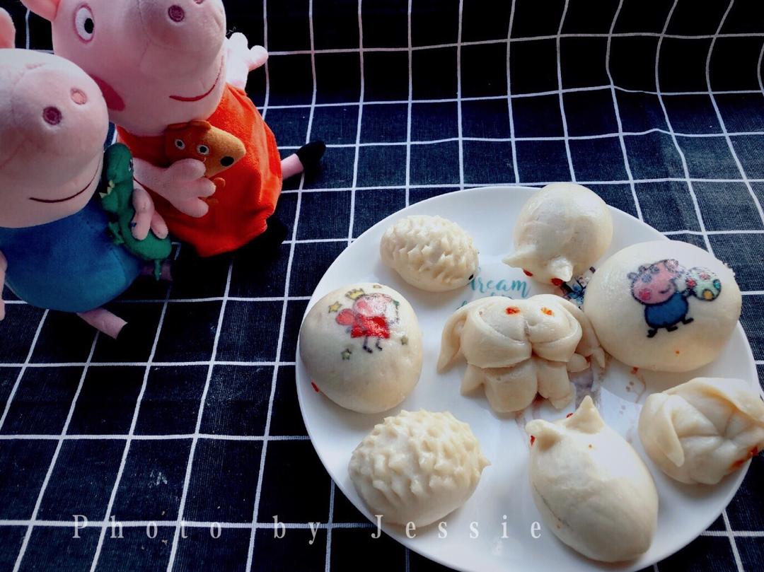 卡通造型的奶香小馒头,宝宝看到开心的不得了,浓郁奶香味,一下吃了一个半