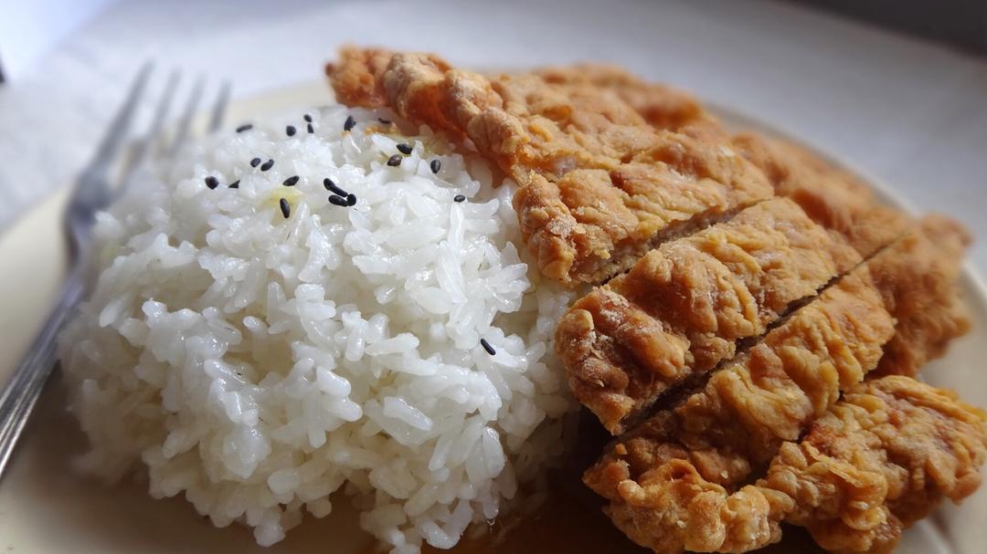寶貝兒橡皮 做过 哎哟2018 手机存图,前几天的咖喱猪排饭猪排用天妇罗粉裹的,没有面包粉炸的好,但是这包天妇罗粉开封很久了也用不完只好先用掉再说啦。咖喱拌饭,分分钟吃下一大碗米饭。 #午餐•2018年1月25日# 2018-01-25