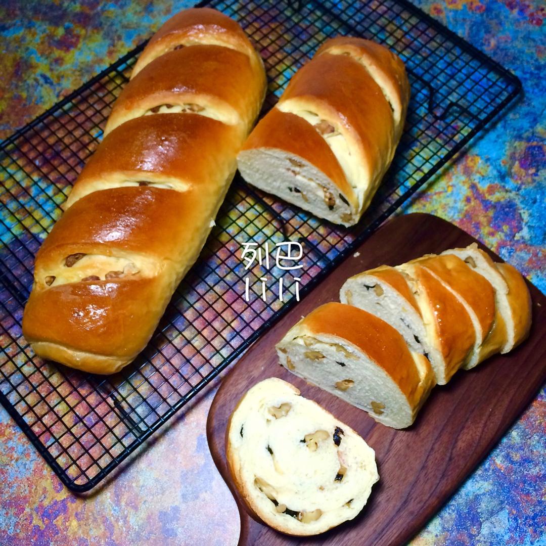 梨梨爱烘焙 做过 新疆果仁列巴 好久不动烤箱的感觉,家里的吐司吃完了,那就做几个果仁列巴吧,核桃仁黑加仑都是现成的。烤箱小那就做少点份量,用了6成的材料,出来2个和平时的小面包比起来也算是巨无霸了🌝 #早餐•2018年2月2日##梨梨制作##梨梨的面包# 2018-02-02