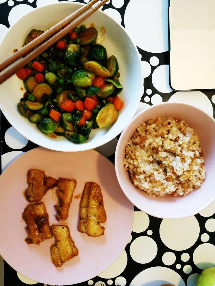 咖喱鲜蔬 + 香煎鱼排 + 杂粮饭