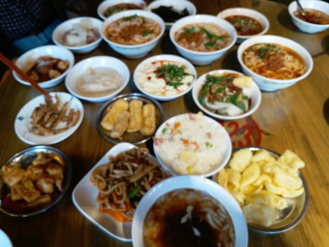 燕儿_9w8v 做过 午餐•2018年2月20日 #午餐•2018年2月20日#云南昆明小吃4人套餐,共18碗。小锅米线、卷粉、面条、凉卷粉、炒饵丝、洋芋焖饭、红油血旺、水豆腐、酸辣红豆、萝卜排骨汤、海带汤、油炸豌豆粉、炸臭豆腐、炸小鱼干、炸虾片、甜酒酿、木瓜凉水、豆面汤圆。太好吃,吃撑了。 2018-02-20