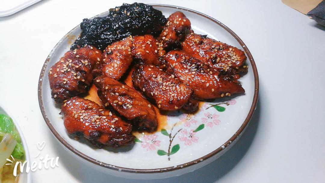 郡主爱生活 做过 可乐鸡翅 #晚餐•2018年2月27日##肉#对这个菜谱有以下建议:第一,老抽放半勺就够了,并且应该在收汁时加,不然色泽太黑暗了。第二,搭配紫菜是不错的选择。第三,洒熟芝麻会更有食欲,食色性也。 2018-02-27