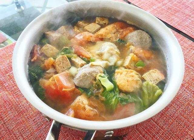 番茄豆干丸子云吞汤,这么一锅饱饱的