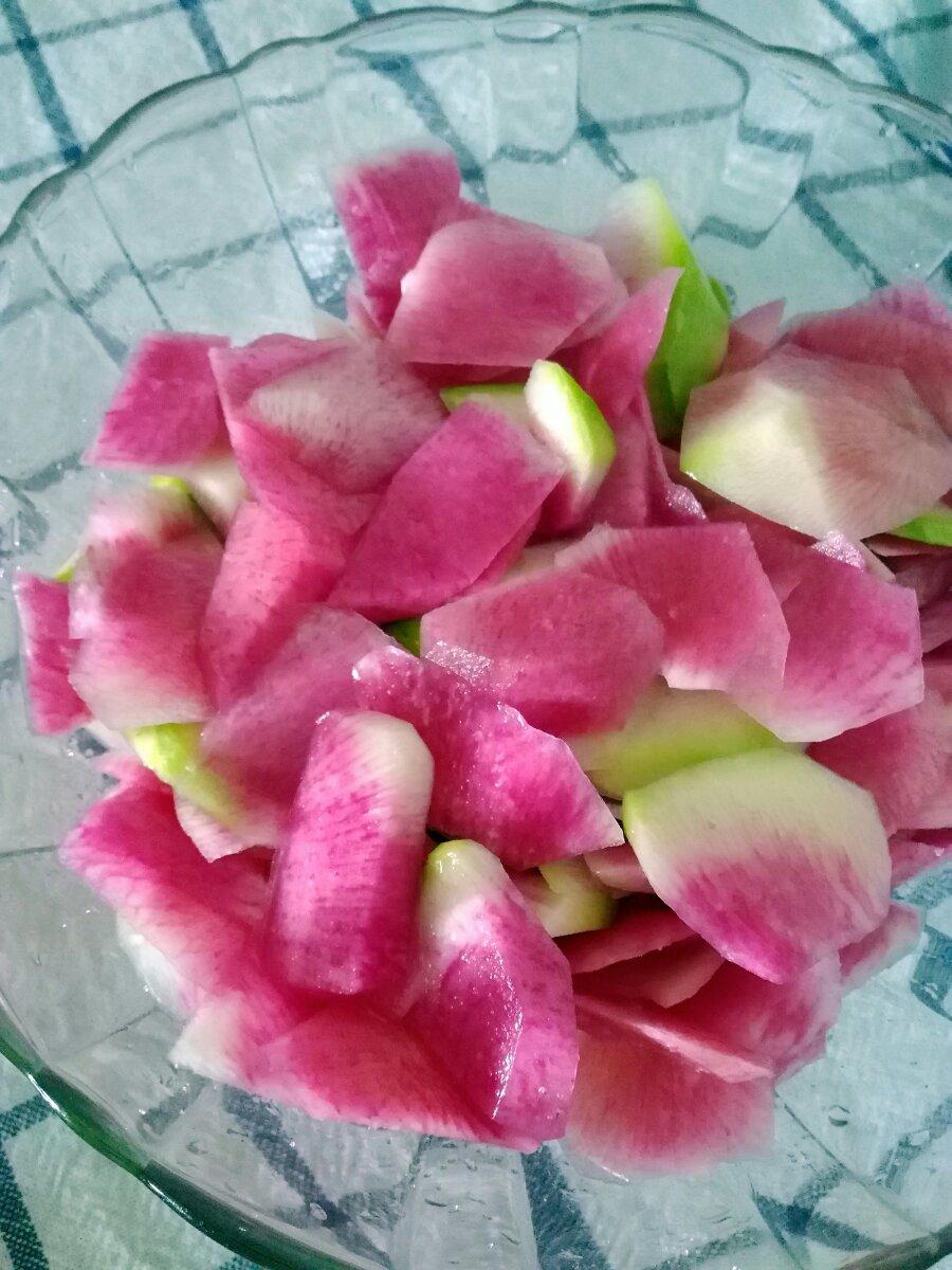 心里美萝卜,看上去生吃不一定好吃,于是切吧切吧曝腌一下当咸菜吃😊