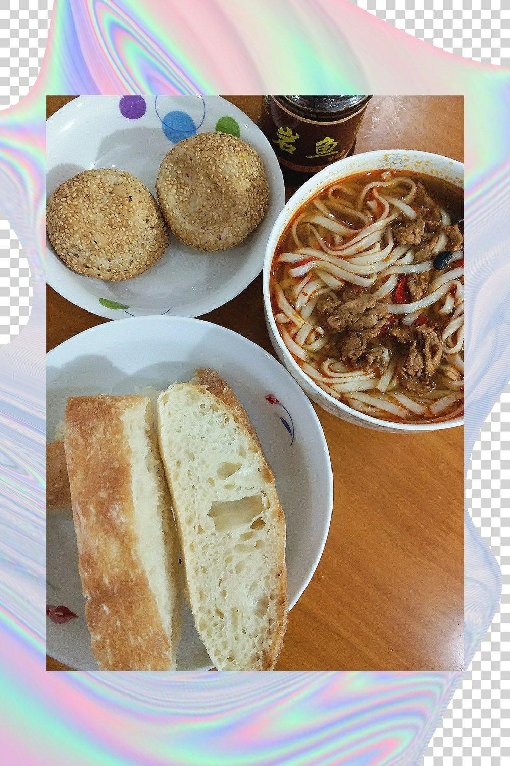 好好D小酒窝 做过 早餐•2018年3月18日 #早餐•2018年3月18日##高三生的生活日食##我眼中的认真生活#今日早餐:免揉欧包(即中式烤饼😜)、红薯芝麻球(空气炸锅版)、鲜肉米粉!😘🌹🌹💖🎉🎉 2018-03-18