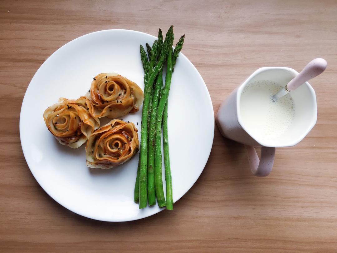 玫瑰饺子配芦笋