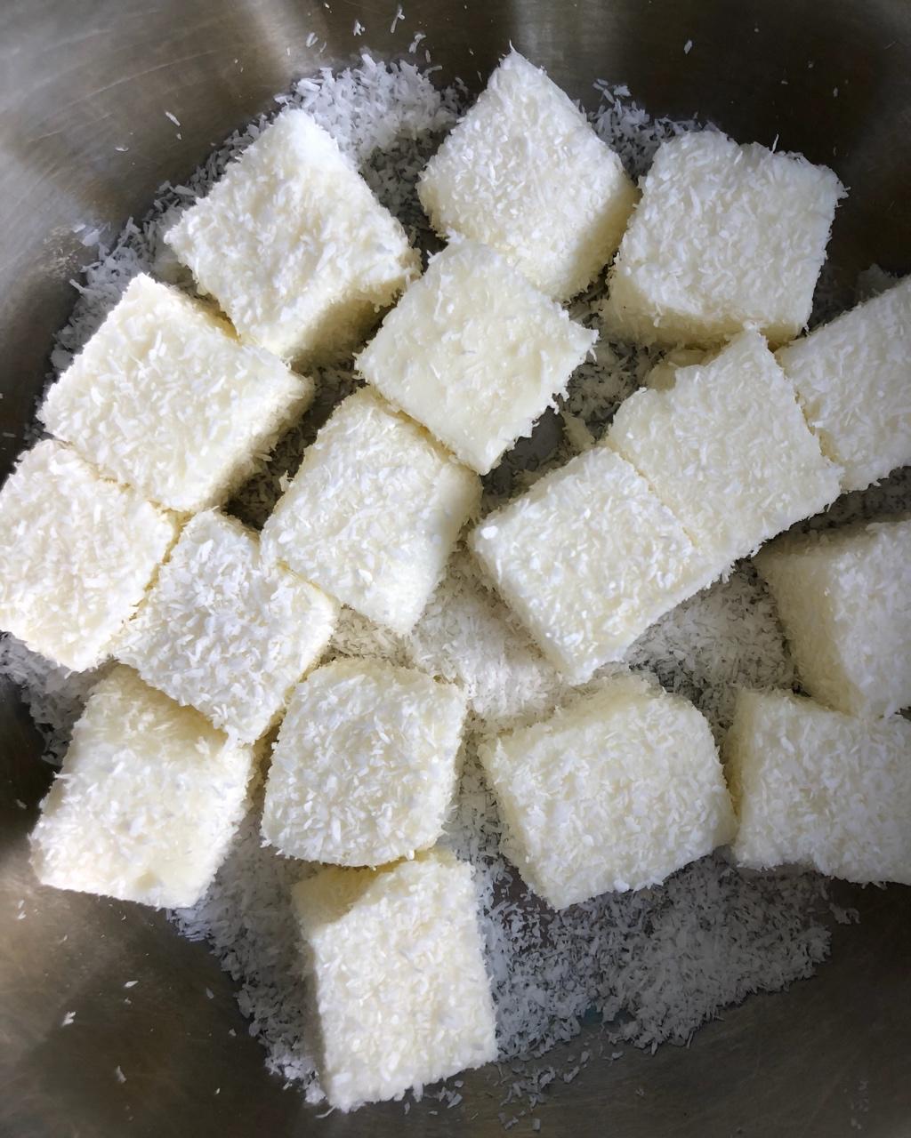 冷藏过后的椰丝牛奶小方,一口一个,味道真不错,夏天必须常备哟!