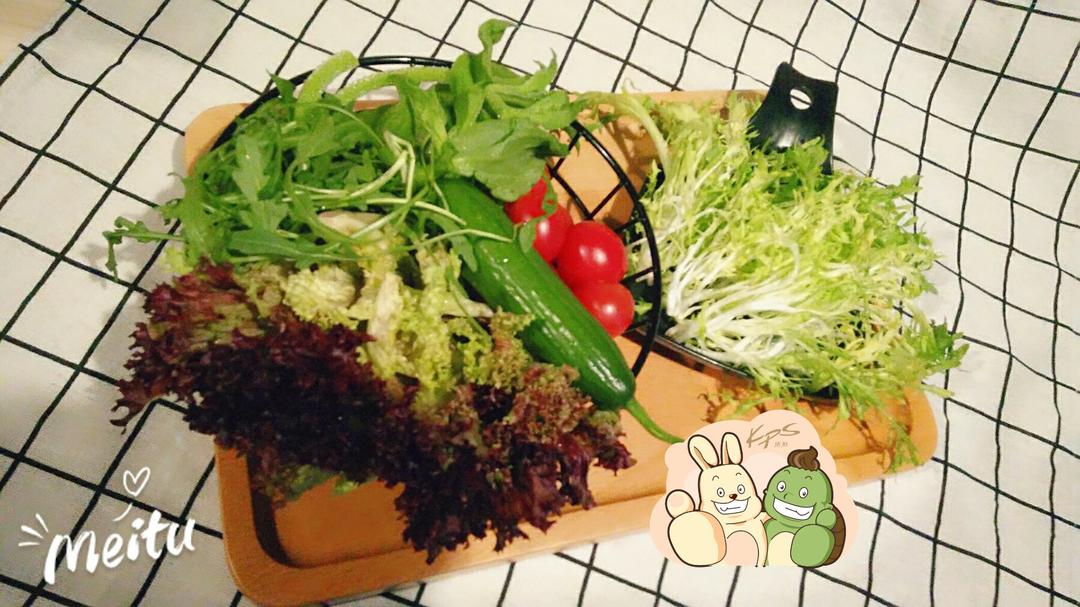 蔬菜沙拉搭配焙香芝麻酱&橄榄醋,