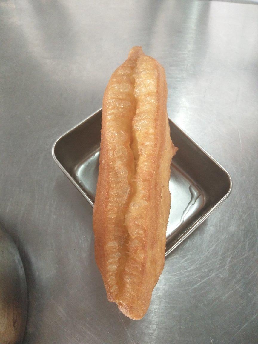 油条。用高粉做的膨发得很大。个人感觉用中筋面粉做的会比较脆,虽然其膨发性较差。