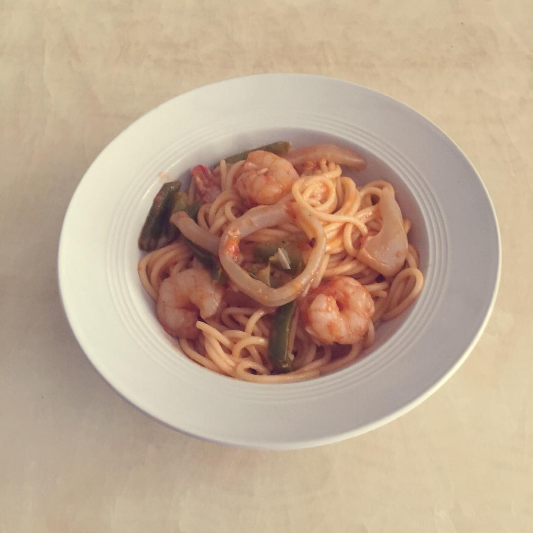 #挑战必胜客#西班牙风情海鲜意面
