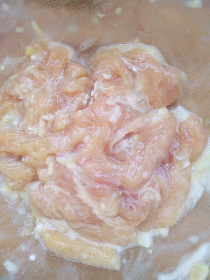 第一次炸,用的面包糠是白色的,所以看起来没那么黄。