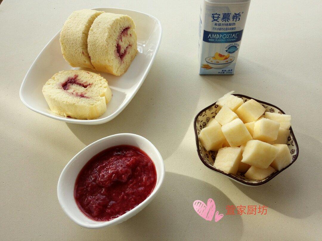 萱家厨坊 做过 早餐•2018年5月6日 #早餐•2018年5月6日#🌸今日早餐🌸蛋糕卷🍰🍃自制🍓酱🍃酸奶🍃苹果🍎小妞儿念叨好几天想吃蛋糕🍰,可大少爷又让我少给小妞儿做烘焙食物[呲牙],哎,我到底听谁的[囧]!翻了翻相册[调皮],发现有段日子没烤蛋糕了[偷笑],还是听大当家的烤个吧[阴险]!吃饱上课去喽😄周日早安[玫瑰] 2018-05-06