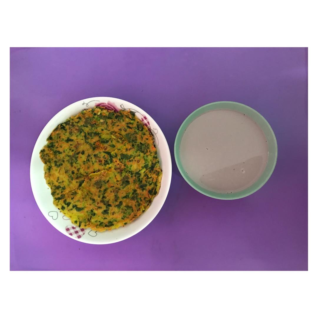 蔬菜玉米面蛋饼,双豆燕窝汤