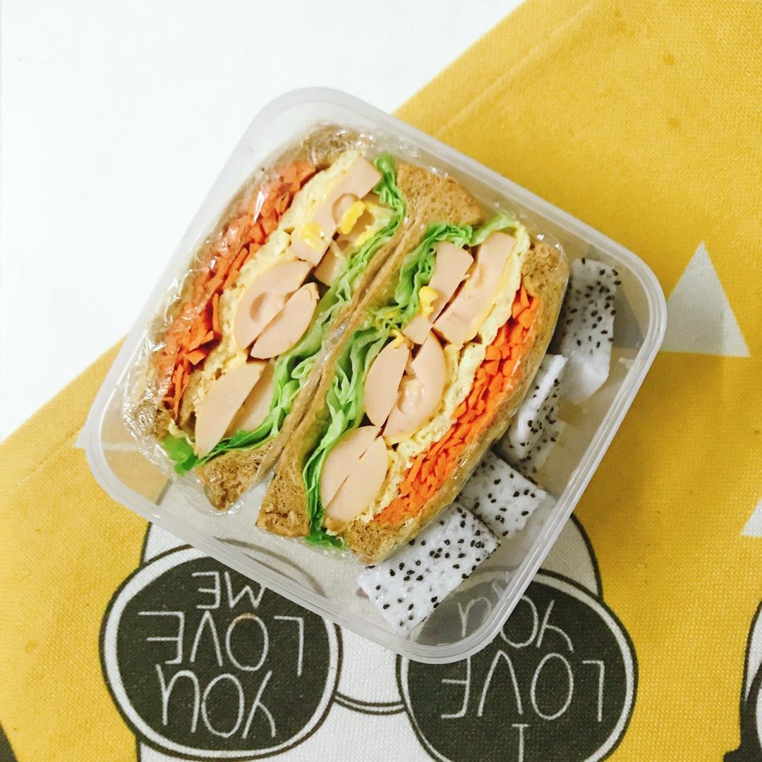 鸡蛋芝士玉米肠三明治 火龙果
