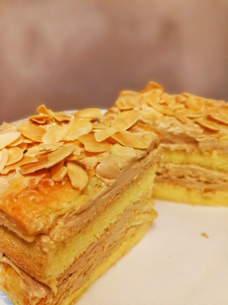 拿破仑蛋糕,心急了,应该冰箱内冷藏一下再切,奶油霜有点化😔😔