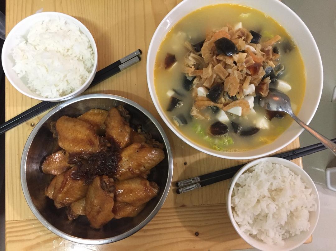 兩個菜⋯有肉有湯有青菜😀