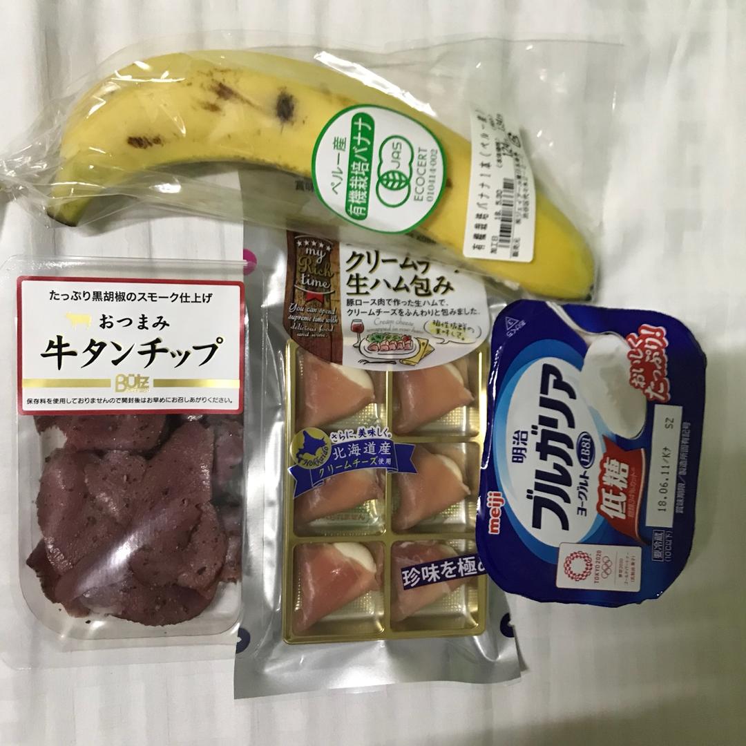 胖酱_ 做过 晚餐•2018年6月1日 回去路上便利店买了黑胡椒牛舌和芝士火腿片,超级好吃。明治酸奶和有机香蕉,水蜜桃味的可乐还有加了橙皮丁的黑麦面包。这次没踩雷,好好吃。 #晚餐•2018年6月1日# 2018-05-31