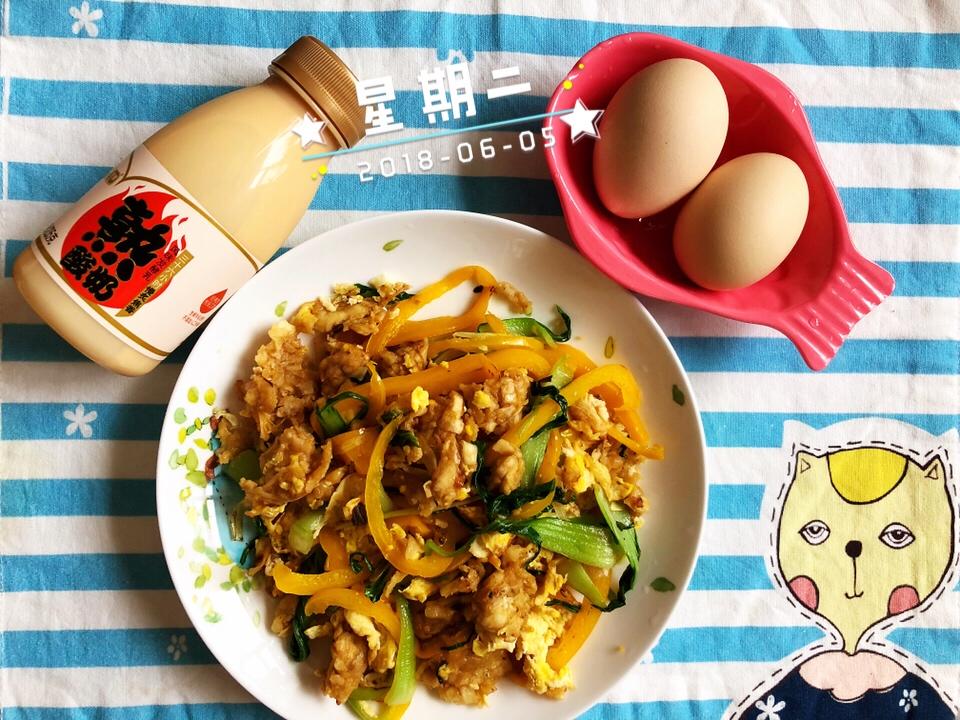 水煮蛋,彩椒油菜蛋炒饼,熟酸奶