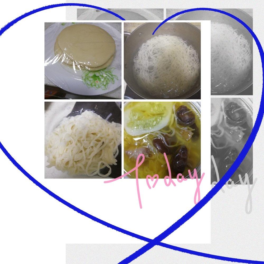 👉面饼和鸡汤是提前准备好的,面条拉得有点粗细不均了,不过好在汤够鲜美
