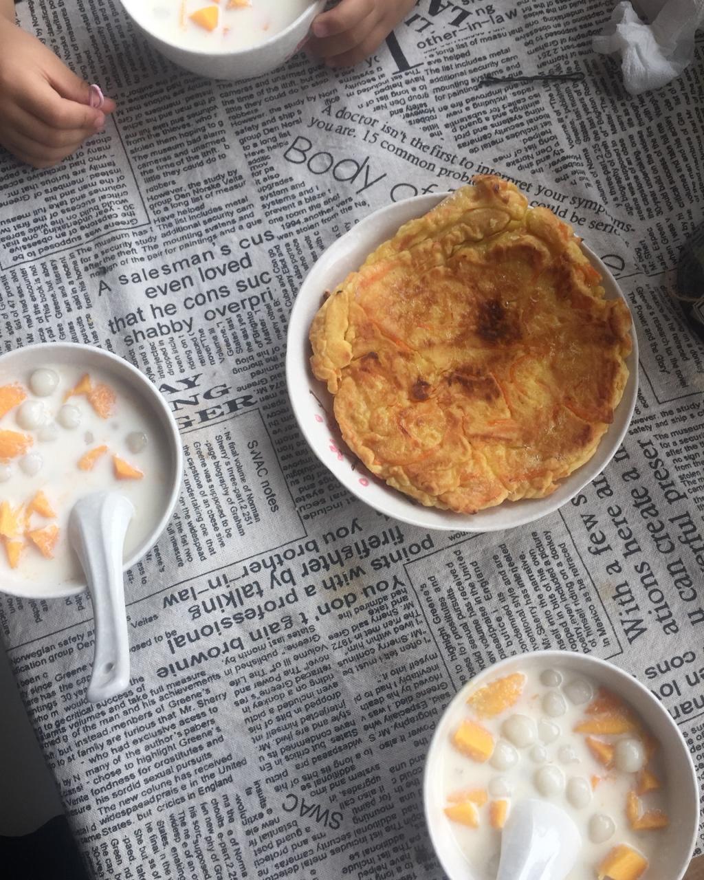 胡萝卜丝饼,芒果牛奶汤圆