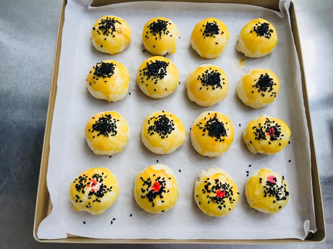 感谢方主🌹方子太棒了,省时省事,为了消耗中午剩的肉馅做了肉酥饼,五个豆沙的充数😃