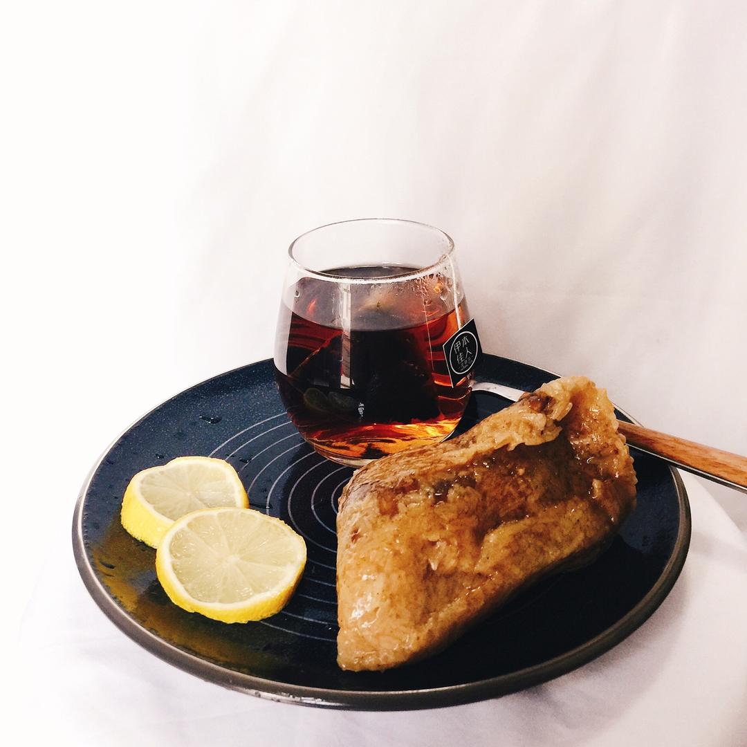 一个大粽子,一杯乌龙茶。