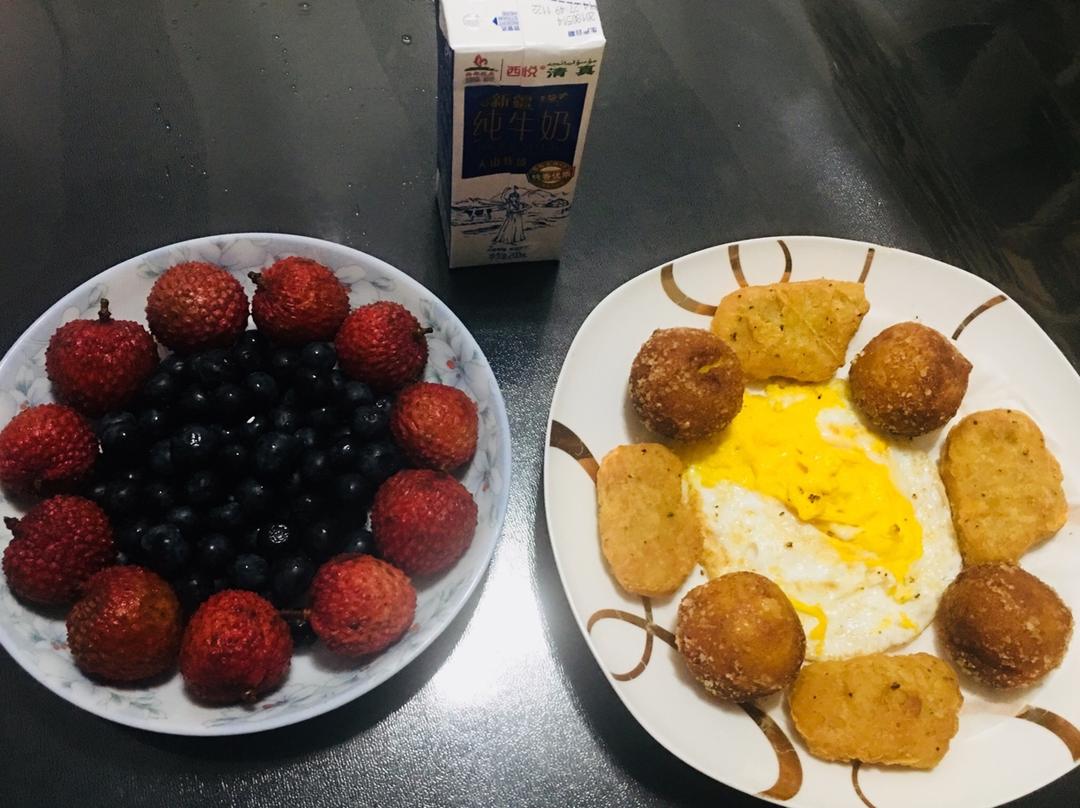蛋黄是故意弄破的,儿子不吃生蛋黄,要吃全熟的