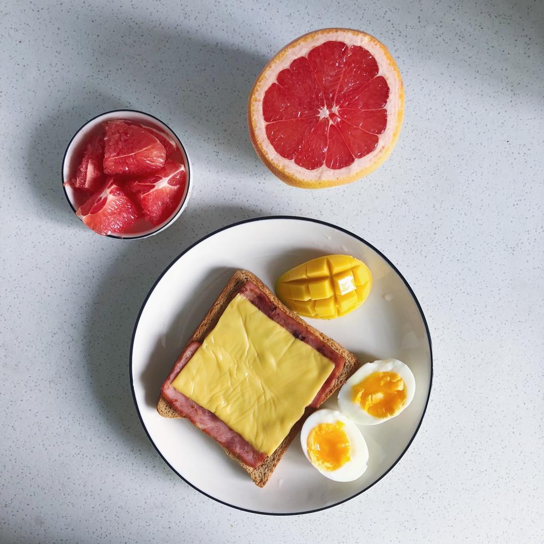 火腿芝士配全麦面包~