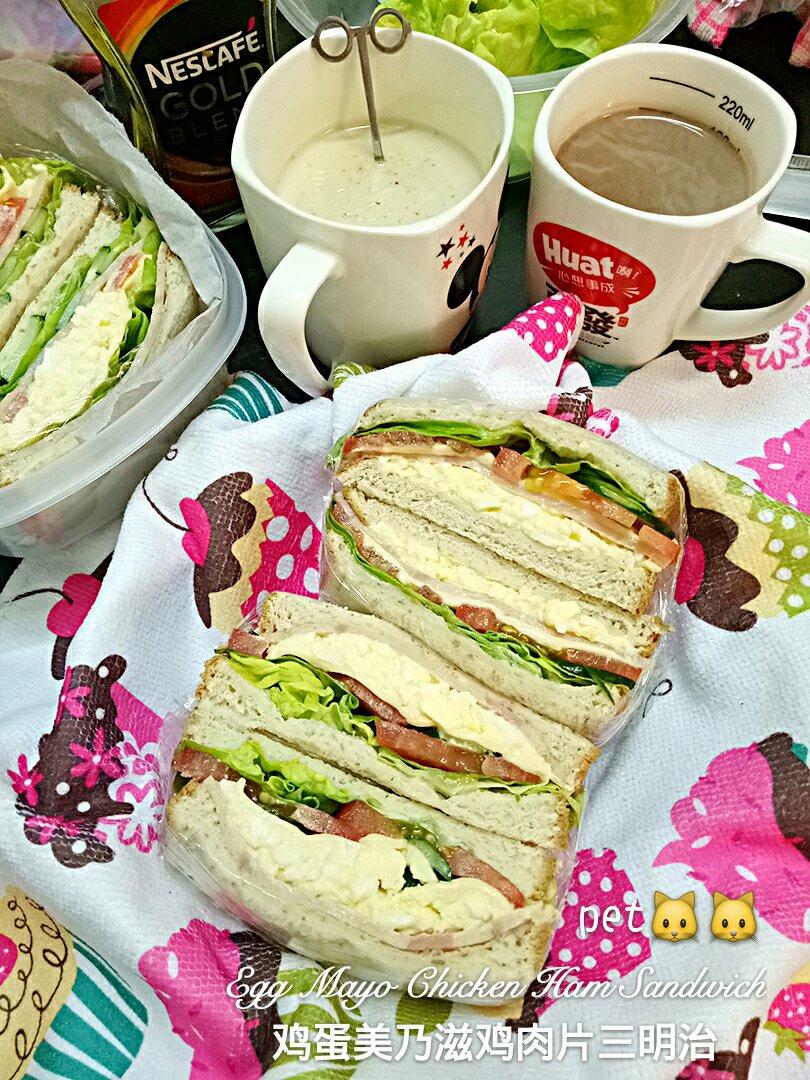 Pet猫猫 做过 第二届早餐马拉松 #早餐•2018年7月11日#来早餐吧!今早又有元气满满的Pet's 自制三明治,依然是蛋啦,不过这次是以蒸为题,美乃滋蛋,鸡肉片是拿去蒸熟上次是煎,这次是蒸。美乃滋蛋是昨晚先准备好放入冰箱,剩余的材料今早准备。内馅材料:鸡蛋美乃滋,鸡肉片,芝士片,撒拉菜,黄瓜片,番茄片 2018-07-11
